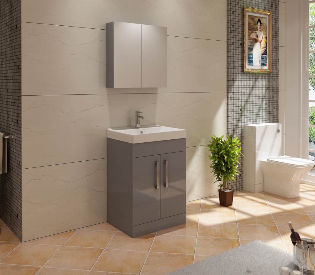 Floorstanding vanity unit 600mm anthracite grey with double drawers. Description Anthracite Grey Gloss Finish 25mm Drawer Fronts Deep Bowl Fo...