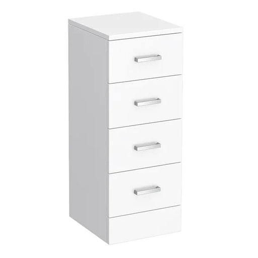 Height - 766mm Width - 300mm Depth - 330mm Material - MDF 4 drawers High quality gloss white finish Modern minimalist chrome handles All units sup...