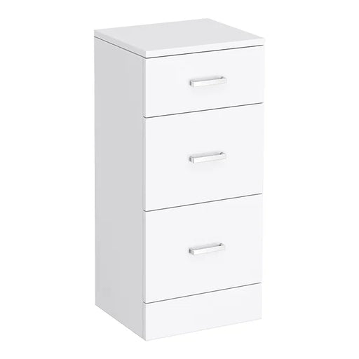 Height - 766mm Width - 350mm Depth - 300mm Material - MDF 3 drawers High quality gloss white finish Modern minimalist chrome handles All units sup...