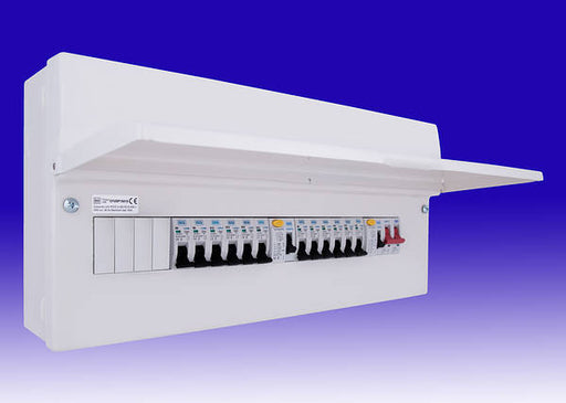 Consumer Unit 18 Module 12 Free Ways c/w 2 x 63a, 30ma RCD, 1 x 100a D/P Mains Switch & Flexi Busbar