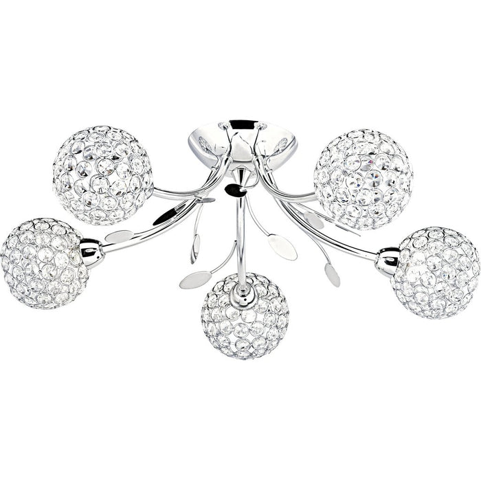 The ornate chrome finish fitting features five elegantly crafted flower head spheres, made from chrome finish hoops and clear glass buttons, which look stunning and create a fabulous lighting effect.
