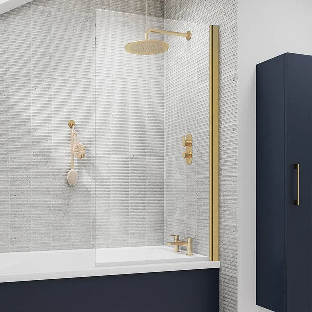 Brushed Brass 6mm Glass Pivot Bath Screen (1435 x 770)