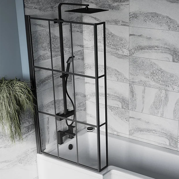 Matt Black Grid L-Shaped Hinged Bath Screen
