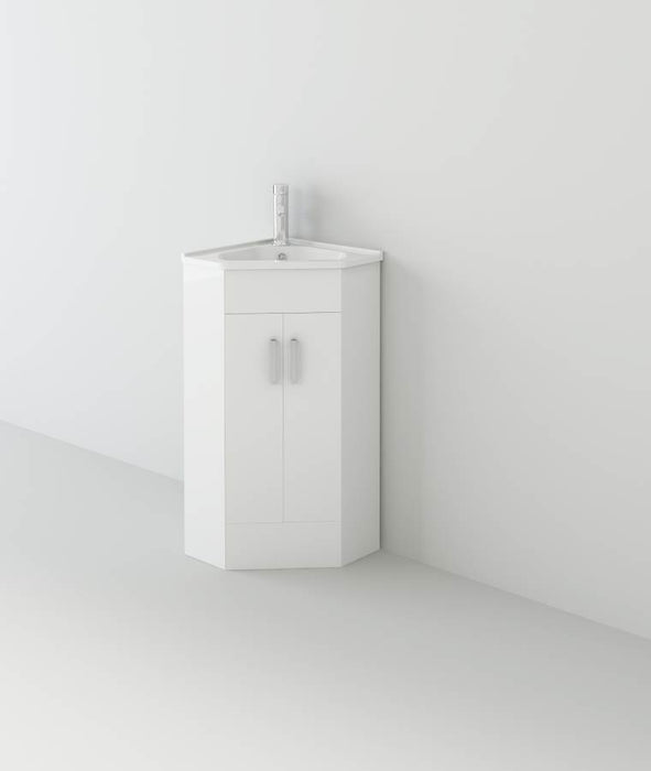 Floorstanding corner vanity unit 400mm white gloss with soft closing doors