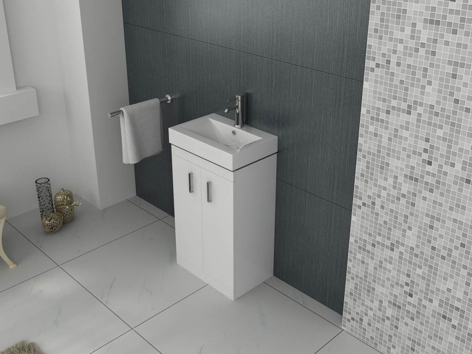 Floorstanding cloakroom vanity unit white gloss 450mm with soft closing doors