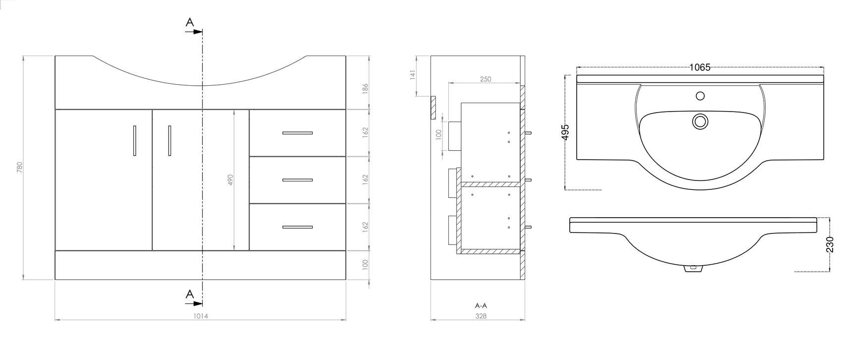 Mars 1050 Unit And Basin – White