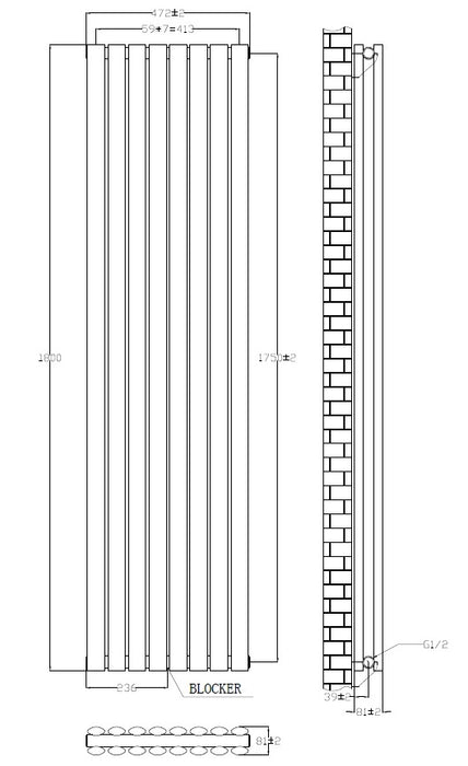 Double oval profile radiator anthracite 1800 x 480mm steel construction